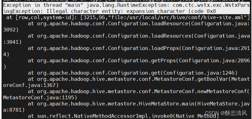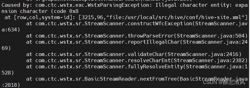 这两个报错其实是一个问题,/hive/conf/hive-site.xml 文件中 3215行,96个字符有问题,删除& 即可
