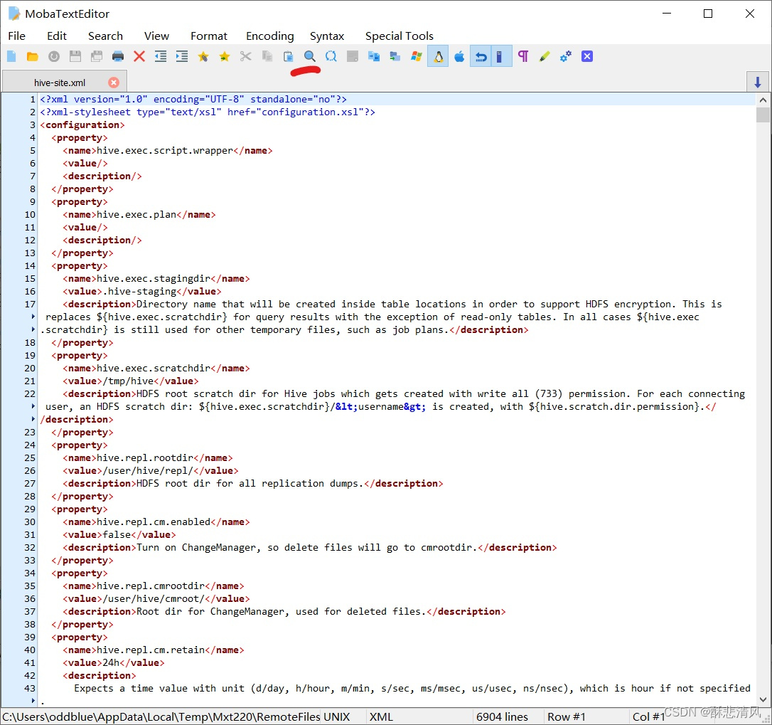 因为配置文件比较大,所以使用mobaxterm直接搜索对应需要修改的配置文件
