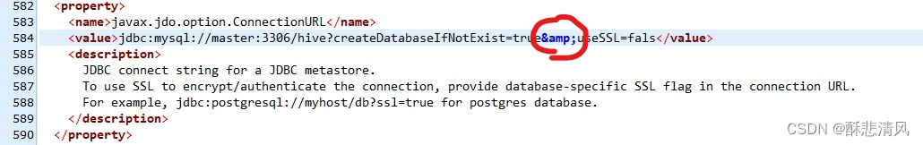 jdbc:mysql://master:3306/hive?useSSL=false JDBC connect string for a JDBC metastore