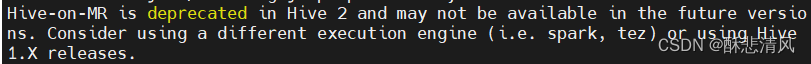 正常问题,hive的版本问题,这个也是无须处理的问题,没有任何影响,如果一定要更改,有2种办法,一种是重新安装,安装1.x版本hive,或者关闭hive的相关配置文件