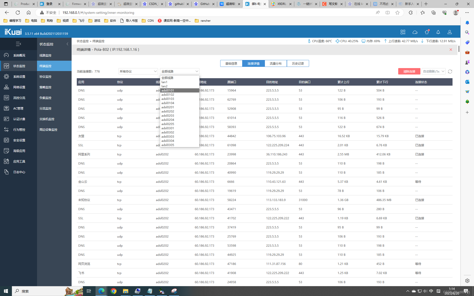 iKuai中,可以查看某个IP的连接详情,具体如下: