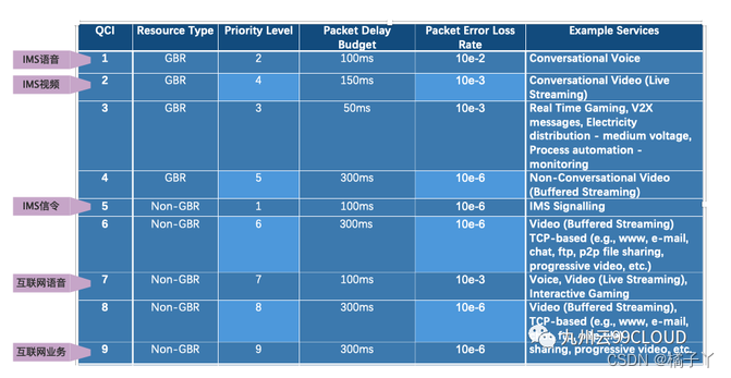 QCI等级及其对应业务
