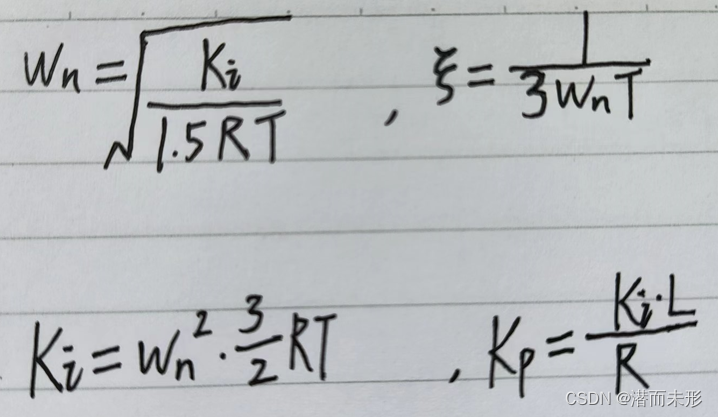 于是,只要设定好阻尼系数δ,那么速度环的PI参数就都求出来了。