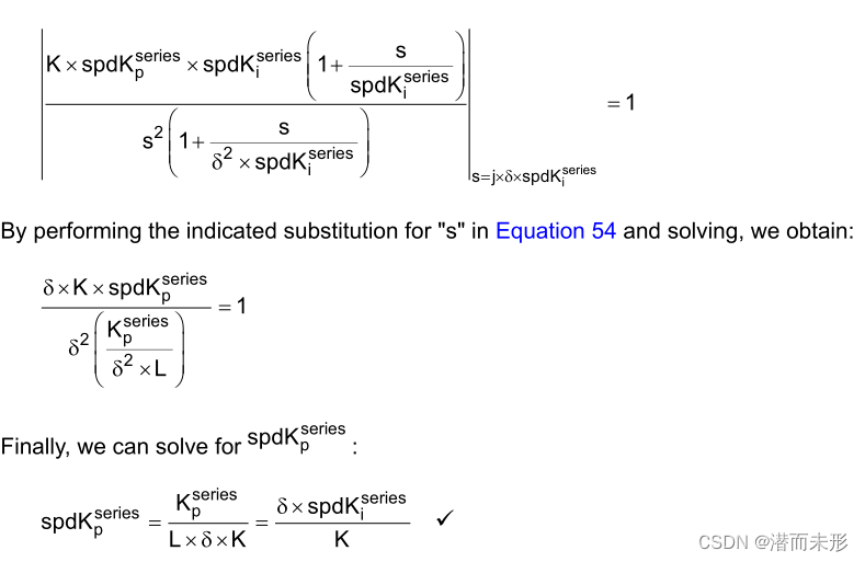 在把δ当做可调参数的情况下,我们已经得到了零点频率s=j*spdKi_series,所以0dB处频率为:s=j*spdKi_series*δ,于是有: