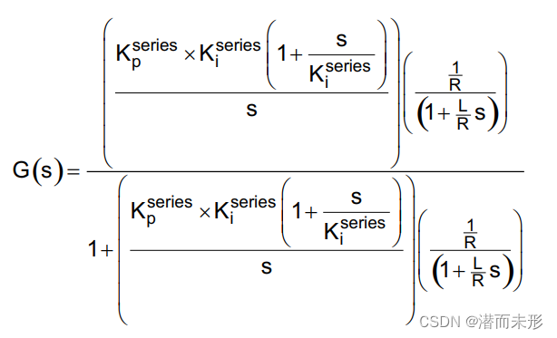 显然,当Ki满足:Ki_series=L/R 时,PI控制器的零点和电机定子传递函数的极点相同,可以互相抵消。此时,闭环传递函数简化成:
