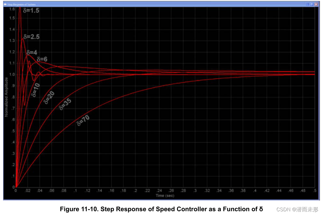 对于δ的选择,TI给出了不同δ下阶跃响应曲线: