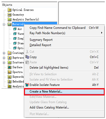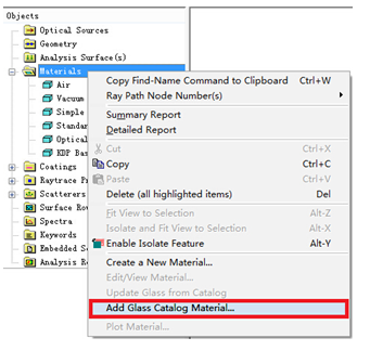 KDP材料可在材料库中找到,在树形文件夹Materials/ Add Glass Catalog Material… ,在类型中选择Custom,点中鼠标上下键移动找到KDP(排列方式是按照第一个英文字母a-z排序)。