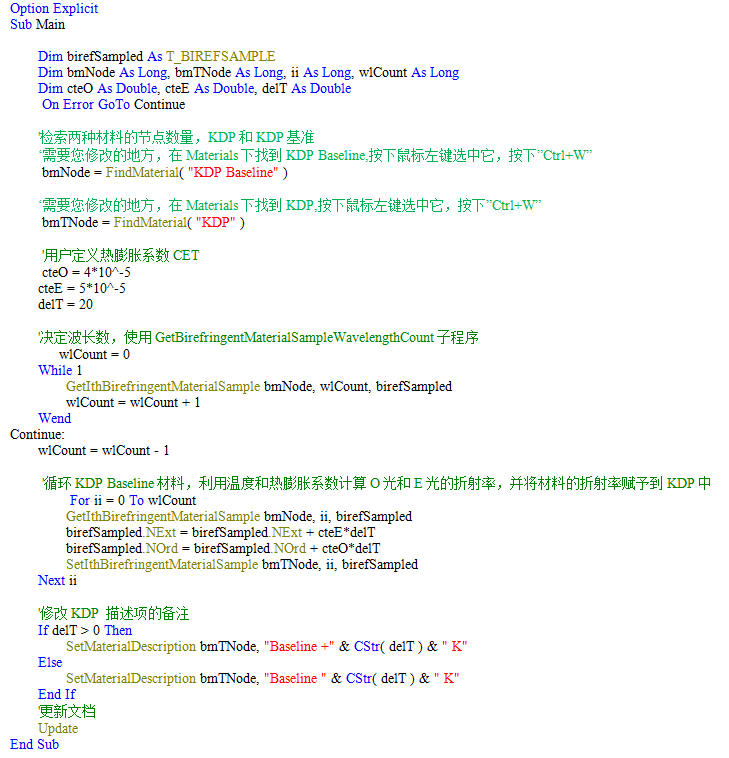 目前,FRED温度敏感性的评价可使用脚本语言实现。本文演示了一个双折射材料的折射率随温度变化而变化脚本。