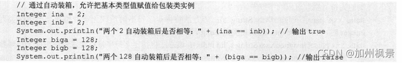 但JDK1.5以后支持所谓的自动装箱,自动装箱就是可以直接把一个基本类型值赋给一个包装类实例,在这种情况下可能会出现一些特别的情形。看如下代码(程序清单同上)。