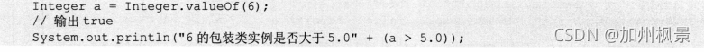 此处要指出的是,虽然包装类型的变量是引用数据类型,但包装类的实例可以与数值类型的值进行比较,这种比较是直接取出包装类实例所包装的数值来进行比较的。