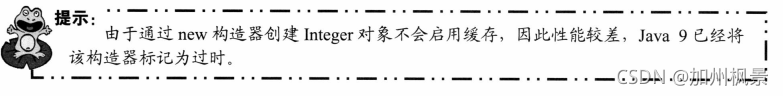 从上面代码可以看出,系统把一个 -128~127之间的整数自动装箱成Integer实例,并放入了一个名为cache的数组中缓存起来。如果以后把一个- 128~127之间的整数自动装箱成一个Integer实例时,实际上是直接指向对应的数组元素,因此-128~127之间的同一个整数自动装箱成Integer实例时,永远都是引用cache数组的同一个数组元素,所以它们全部相等;但每次把一个不在-128~127范围内的整数自动装箱成Integer实例时,系统总是重新创建--个Integer实例,所以出现程序中的运行结果。