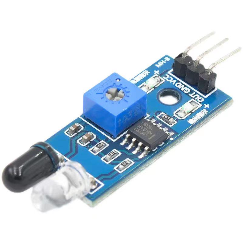 其有一个发射管和一个接受管,当遇到障碍物时,输出指示灯会亮起,并且输出接口输出低电平。