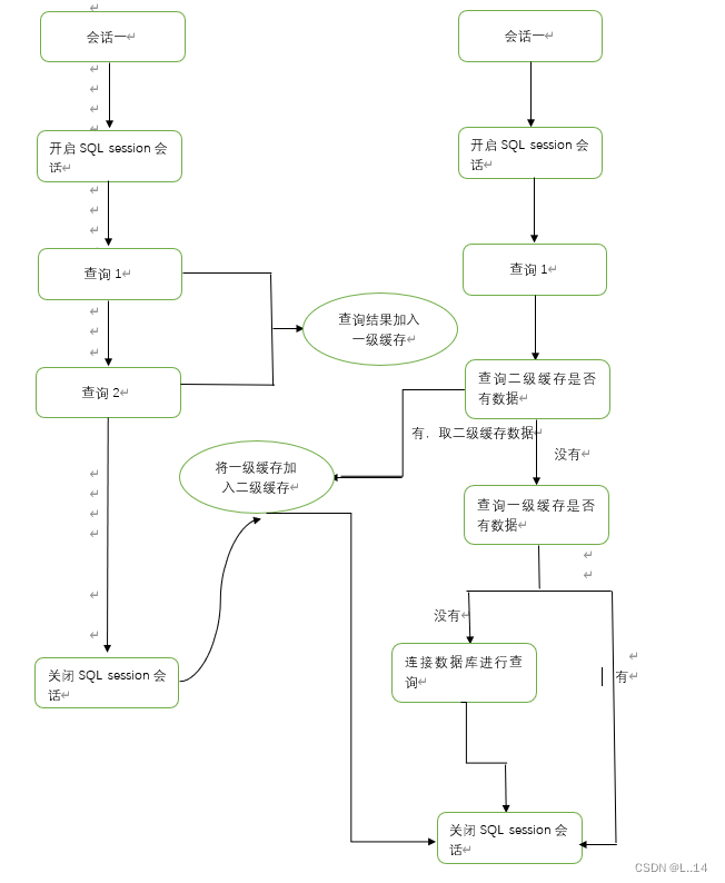 1.一级缓存:是基于数据库会话的,并且默认开启。一级缓存的作用域为SqlSession。在同一个SqlSession中,执行相同的sql语句,那么第一次就会去数据库中进行查询,并写到缓存中,如果我们后面还想去访问数据库查询,就直接去一级缓存中获取就可以了。