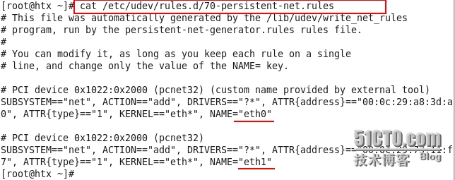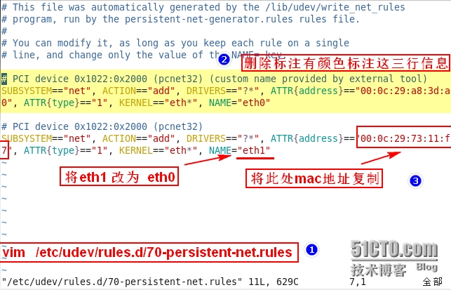 3:删除多余mac地址信息,并修改网卡配置文件: /etc/udev/rules.d/70-persistent-net.rules 文件下记录着网卡对应mac地址信息: