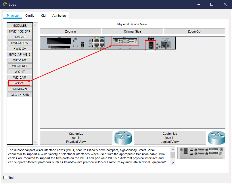 关闭路由器电源,把WIC-2T(串口*2)模块分别添加到两台路由器,然后重新打开电源