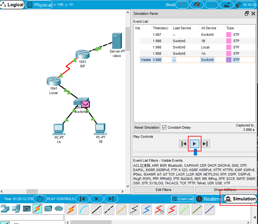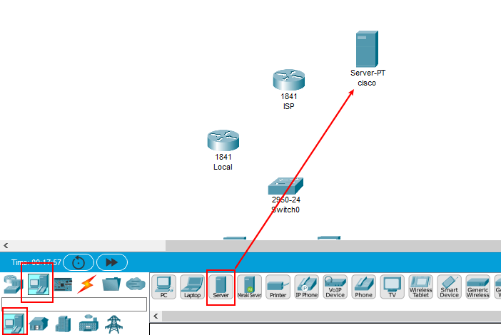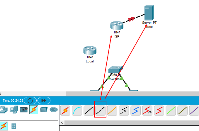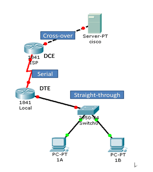 用串行线(Serial)DCE一端连接ISP的s0/0/0,另一端(DTE)连接Local的s0/0/0