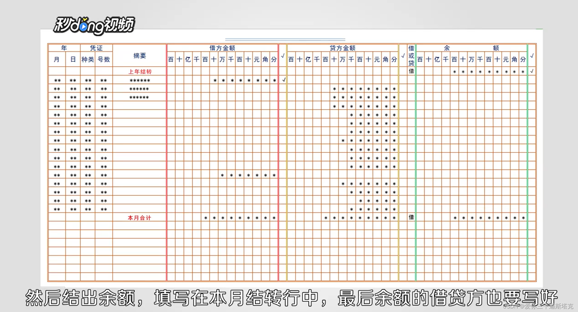 2、然后结出余额,填写在本月结转行中,最后余额的借贷方也要写好。