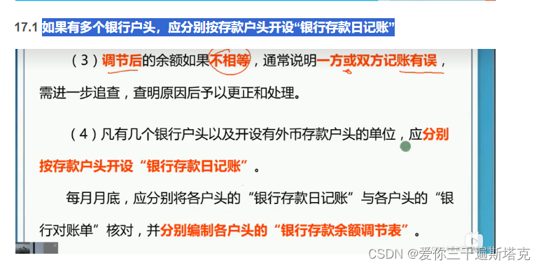 1、银行存款日记账的账面余额应定期与开户银行转来的“银行对账单”的余额核对相符,至少每月核对一次。单位银行存款账面余额与银行对账单余额之间如有差额,应通过编制“银行存款余额调节表”调节相符。