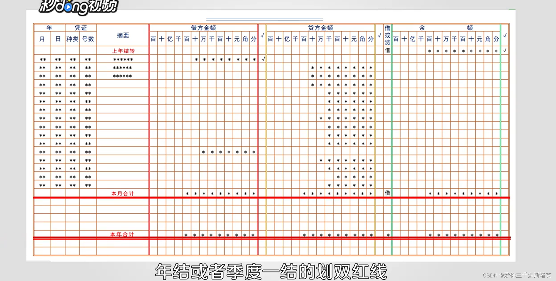 一、不能在本月合计上面划线,应该在本月合计和本年累计下面划红线,年末结转就直接过账就可以了,在摘要写上结转下年。
