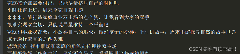 max_id = data['max_id'] if 'max_id' in data else None with open('pl.txt', 'a', encoding='utf-8') as file: # 在文件里续写for item in items: # 遍历列表每个评论texts = item['text'] if 'text' in item else None # 找到评论文本texts = re.sub('\<.*\>', ' ', texts) # 去除一些标签转译成的符号file.write(texts + '\n')