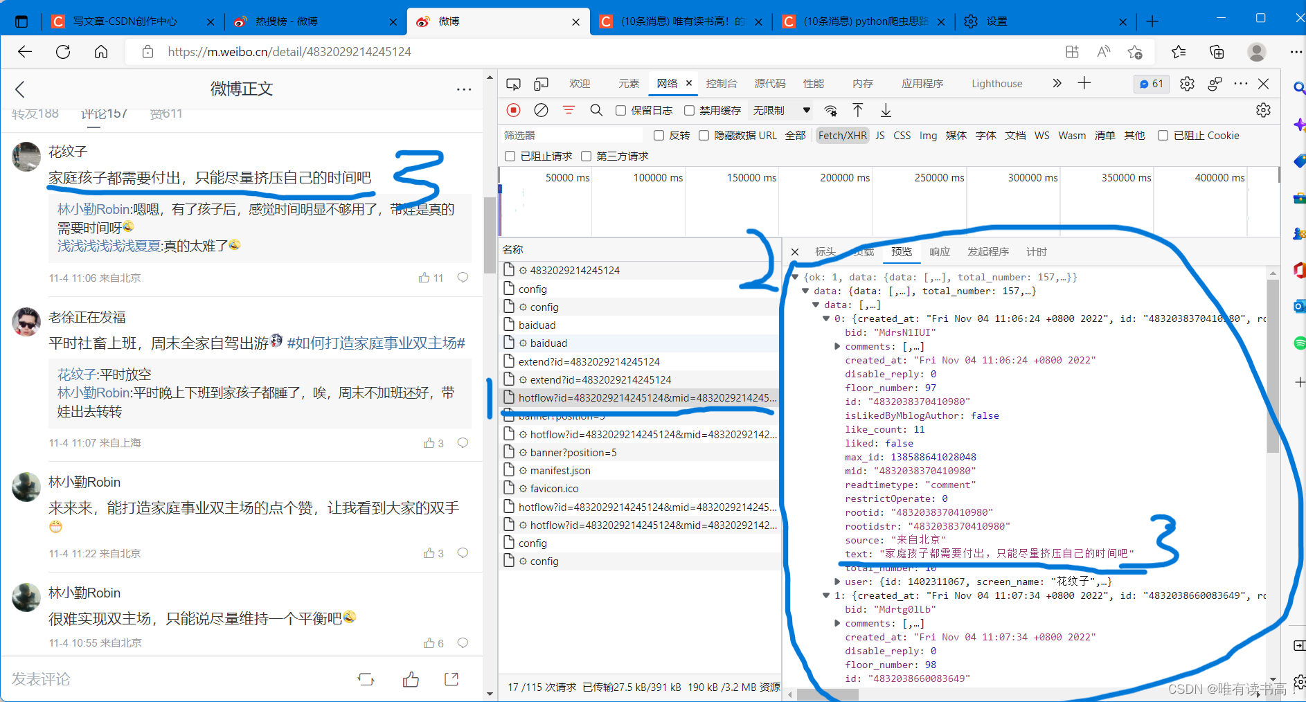 如果通过热搜榜爬取评论,那么就需要寻找从热搜榜到该微博之间各个网页的链接之间的关系,是个比较费眼睛的工作。