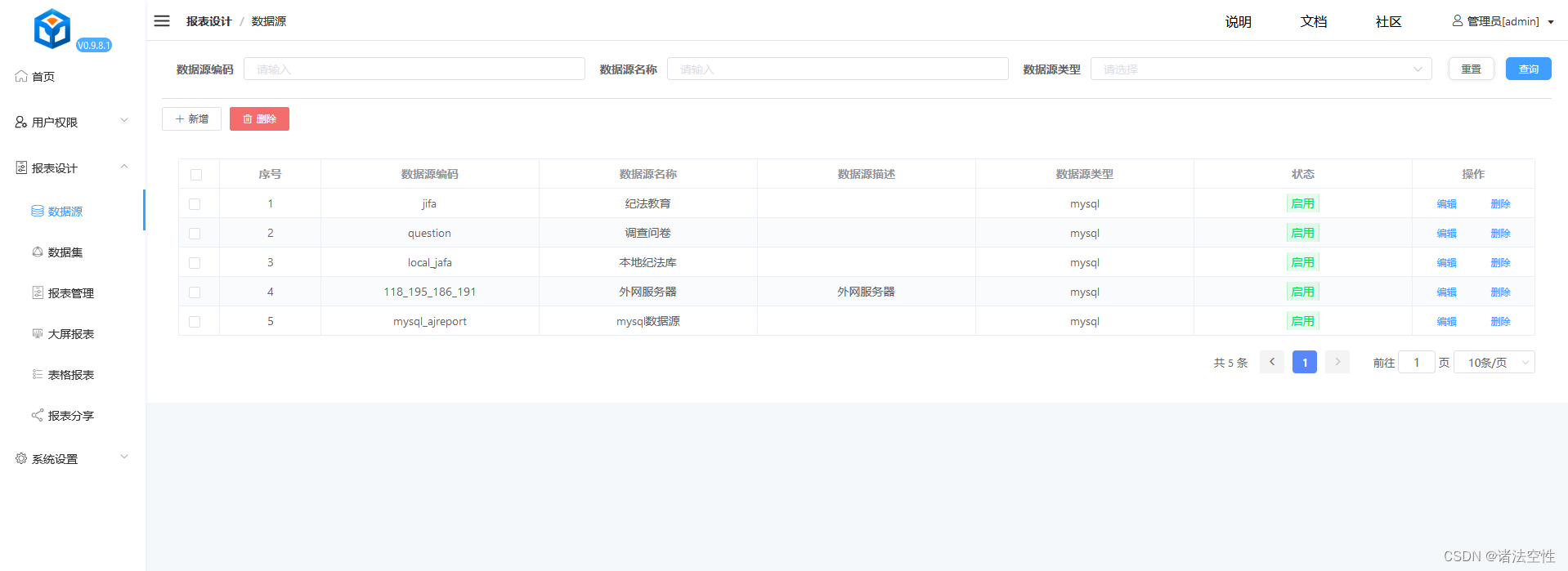 数据源编码:你自己给的唯一id。建议配置时加前缀区分不同项目。