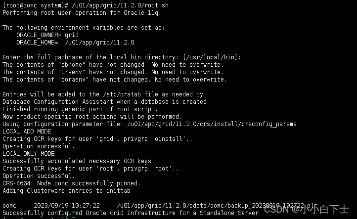 ORACLE_HOME= /u01/app/grid/11.2.0Enter the full pathname of the local bin directory: [/usr/local/bin]:
