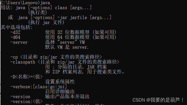 打开DOS窗口(win+R输入cmd按回车),在窗口中输入java和javac,分别出现如下代码(部分截图),即表示安装成功: