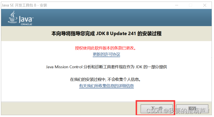 - 双击Java安装,出现如下界面选择下一步: