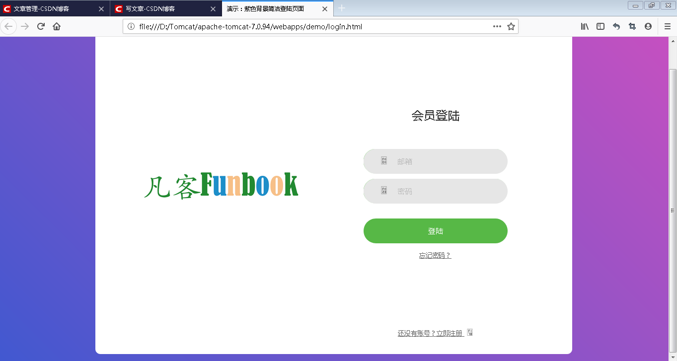 根据网上找的模板,然后稍加修改,就可实现登录界面、主页、读书功能页、影音功能页、个人信息页的设计,下图是登录界面截图