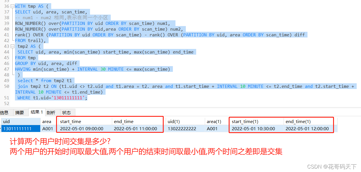 JOIN (SELECT DISTINCT uid, date(login_time) ymd FROM t_login WHERE login_time BETWEEN timestamp '2022-01-01 00:00:00' AND '2022-01-31 23:59:59') t3 ON (t2.uid = t3.uid AND datediff(t3.ymd, t2.ymd)=1);-- 窗口函数ROW_NUMBER