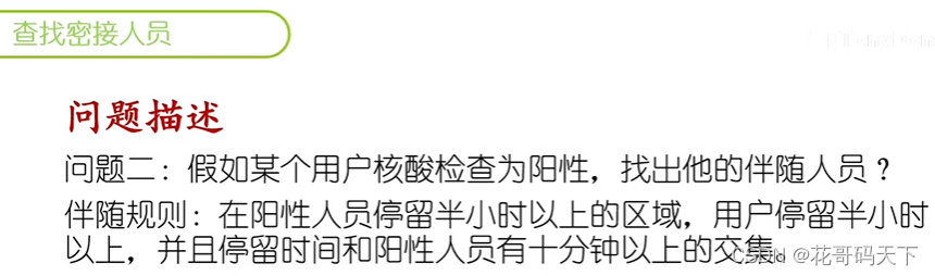-- 问题二:假如某个用户核酸检查为阳性,找出他的伴随人员?