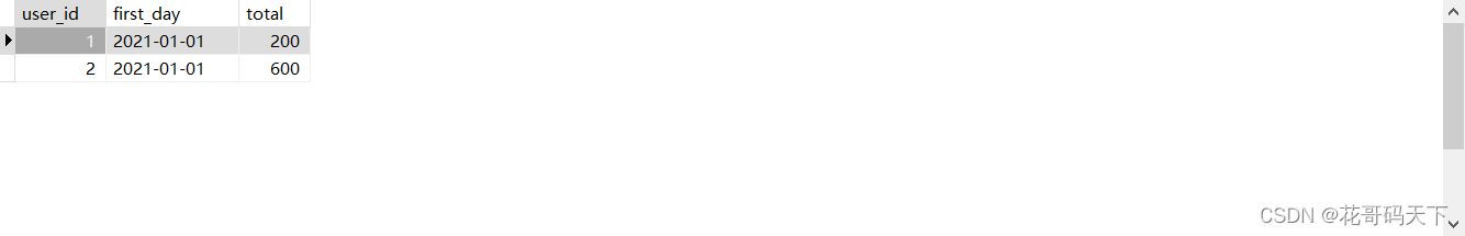 INSERT INTO t3 VALUES (2, '2021-01-01', 200), (2, '2021-01-11', 200), (2, '2021-01-12', 200);-- 用户id 首次销售日期 30天内累计销售金额