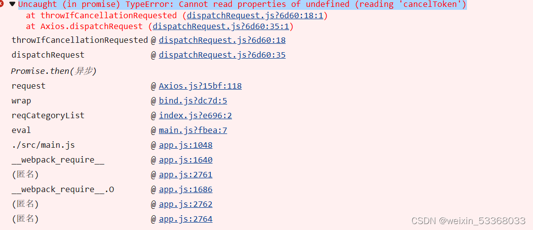 解决axios发送请求报错:Cannot read properties of undefined (reading ‘cancelToken‘)