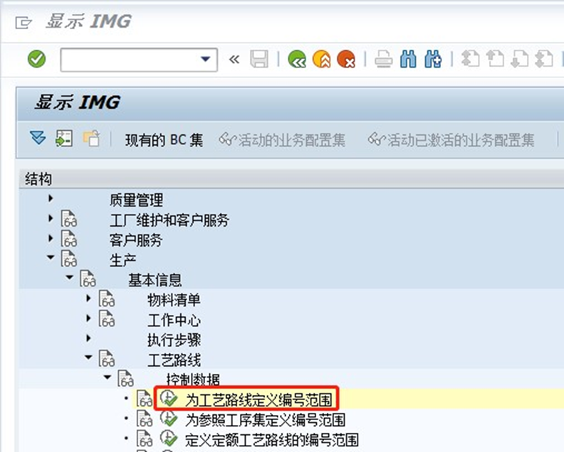 菜单路径:IMG>生产>基本数据>工艺路线>控制数据>为工艺路线定义编号范围事务代码:OP62