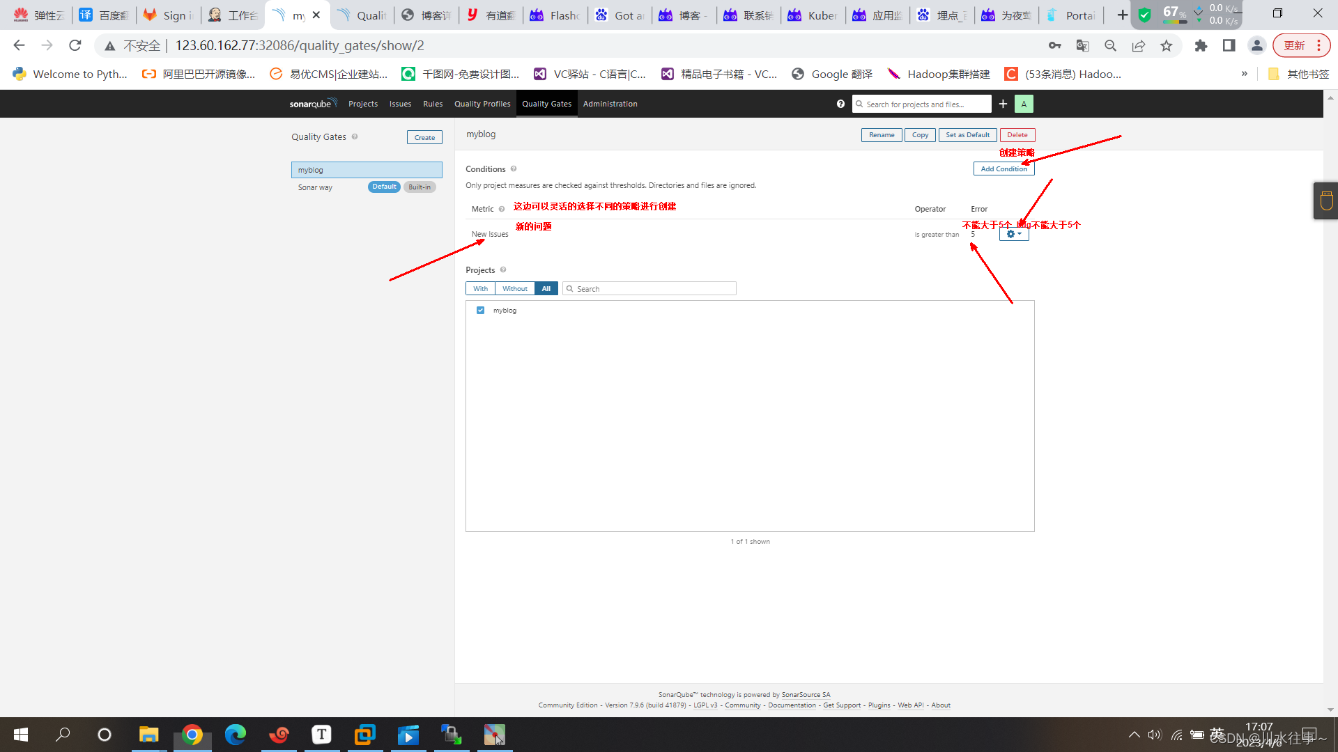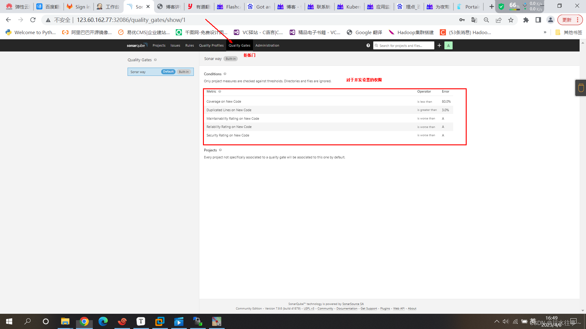 Metric Operator ErrorCoverage on New Code is less than 80.0% #代码 修改/改变超过代码80%才能通过 小于百分之80报错Duplicated Lines on New Code is greater than 3.0% #新代码的重复行大于百分之三 才通过Maintainability Rating on New Code is worse than AReliability Rating on New Code is worse than ASecurity Rating on New Code is worse than A