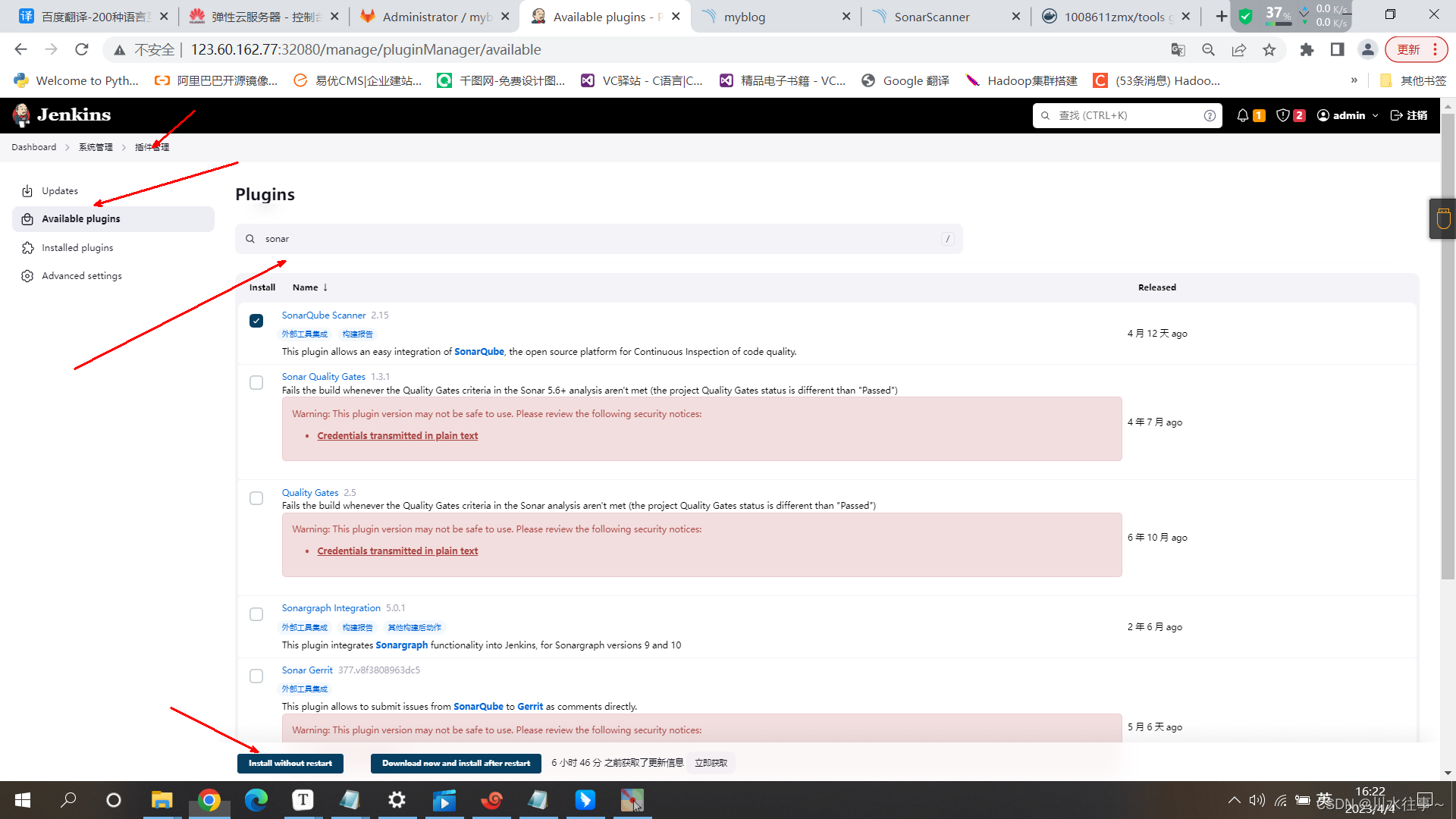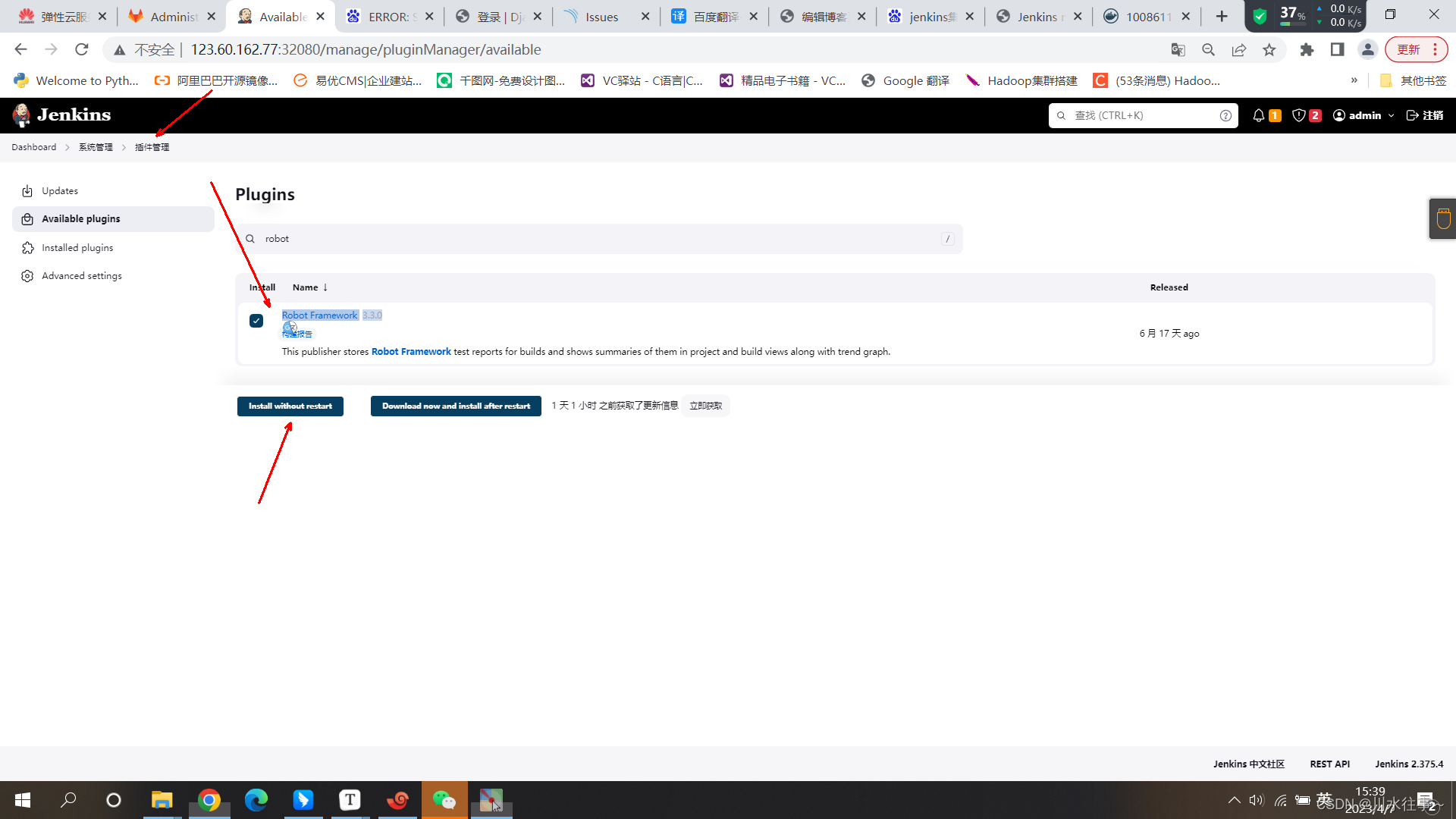 Updates:更新插件Available plugins 下载并安装插件Installed plugins 已安装的插件Advanced settings 插件高级设置blue Ocean:pipaline可视化管理工具