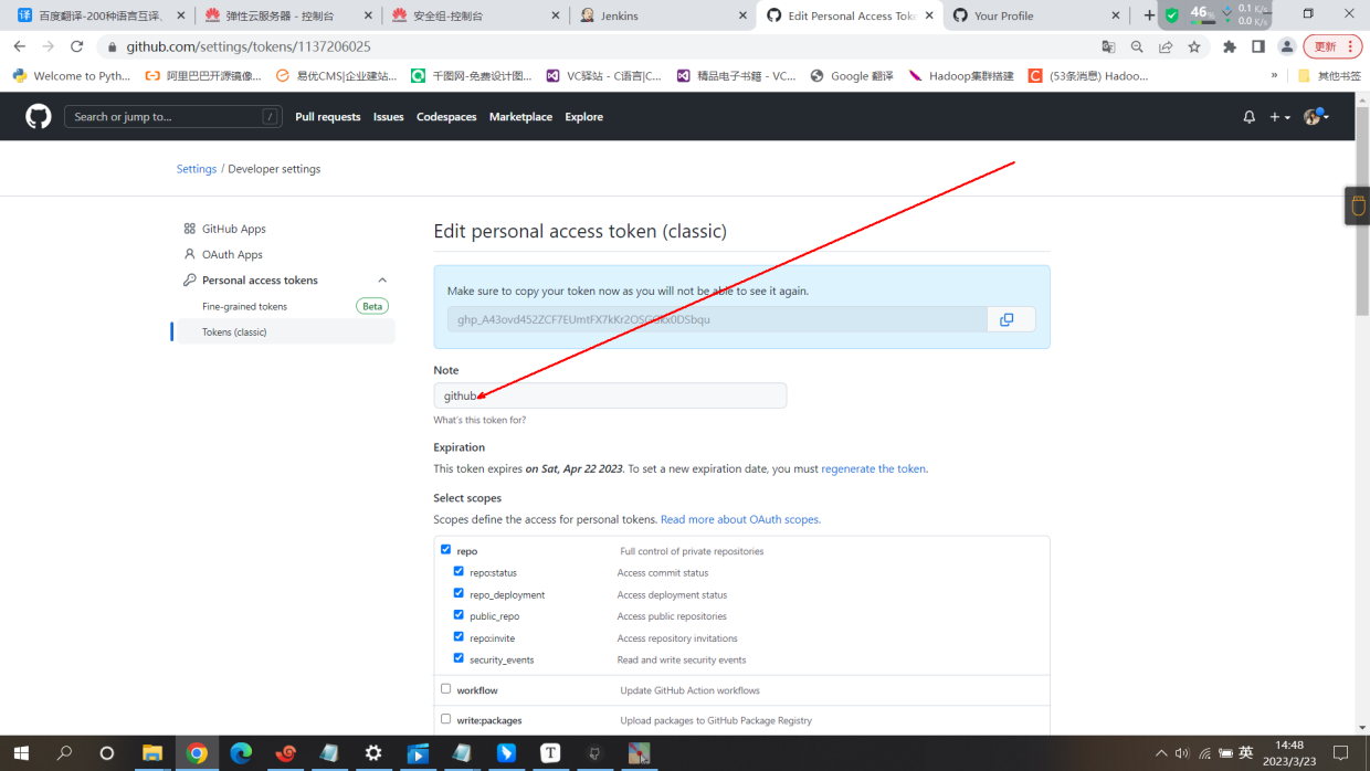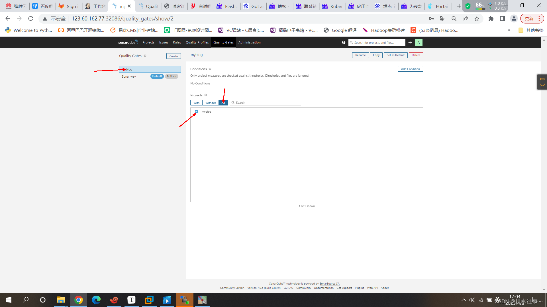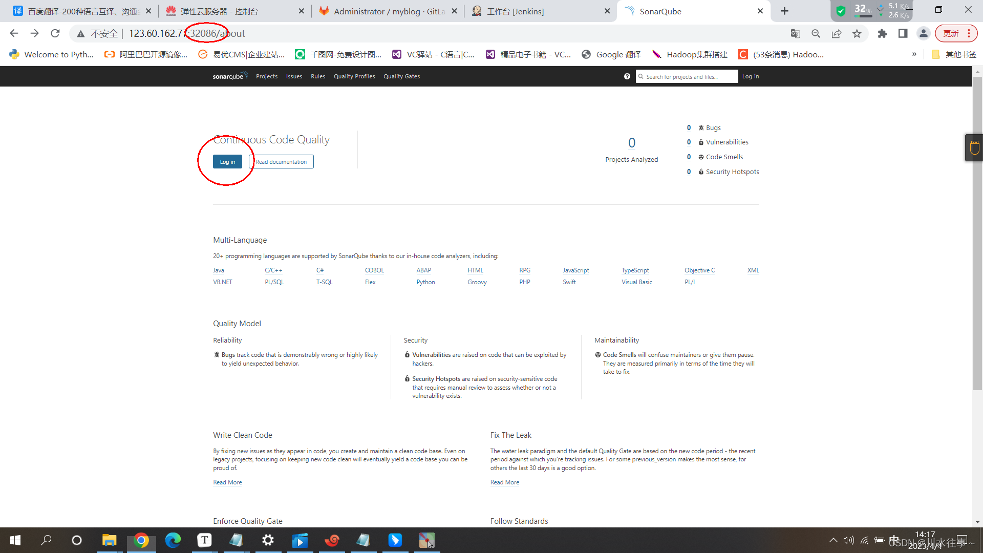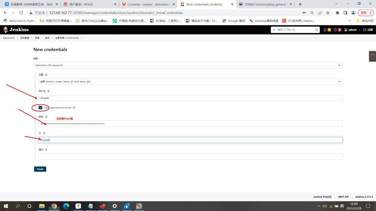 而jenkins凭证里面需要的token值需要到sonar中创建