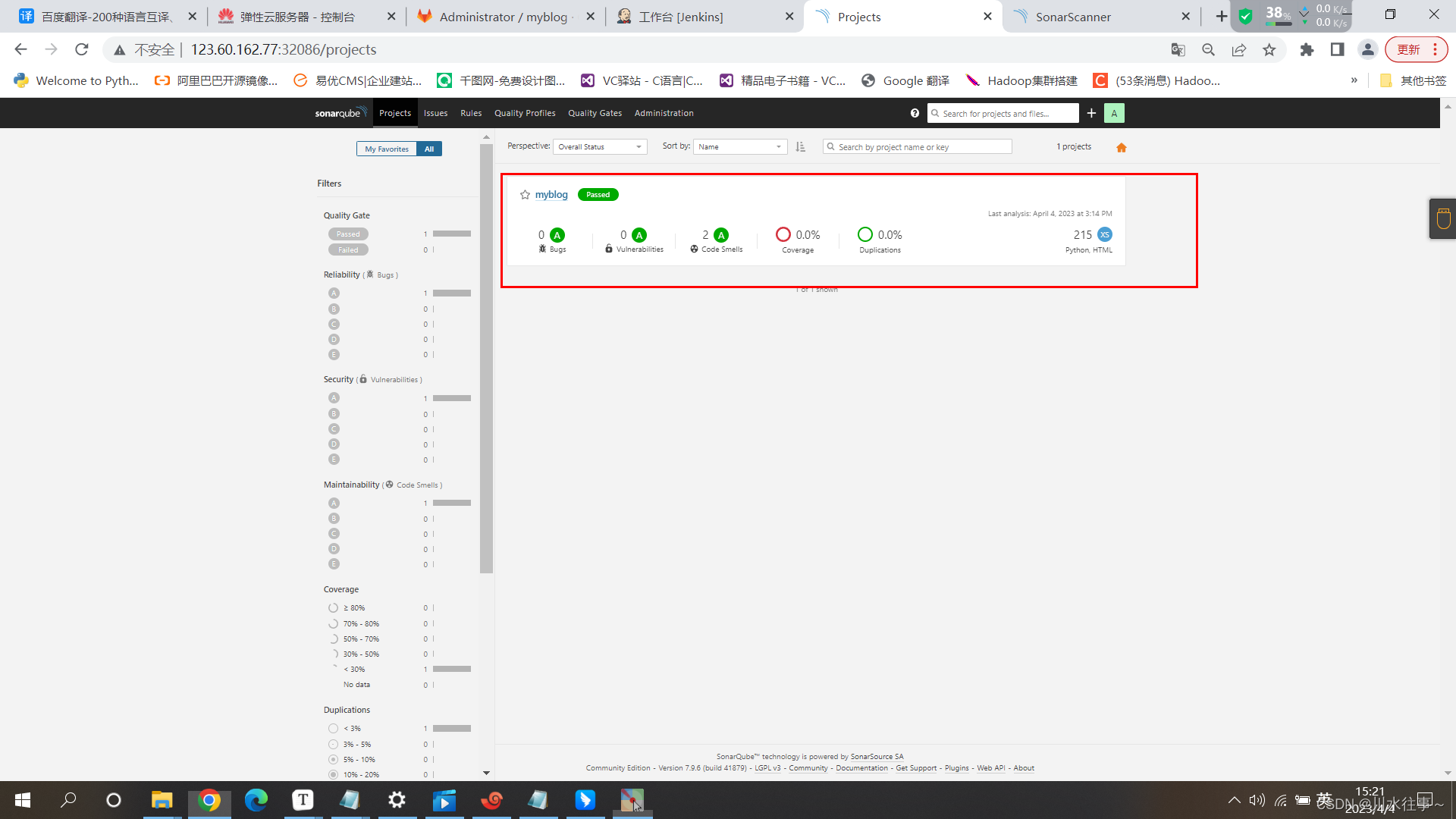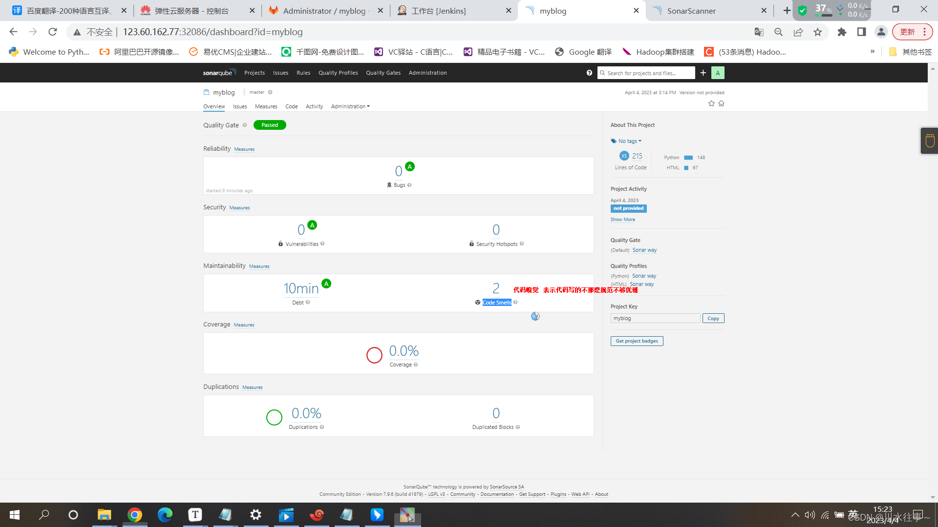 如果报错的话,将当时我们用命令执行出来的.scannerwork 进行删除 !!!