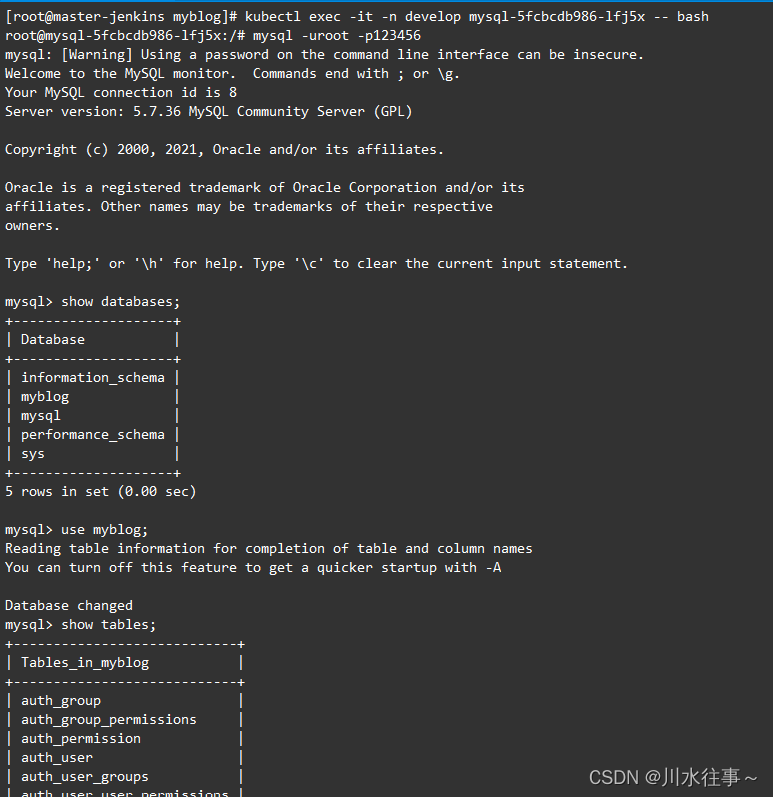 kubectl exec -it -n develop myblog-67976548d7-k58ln -- bash