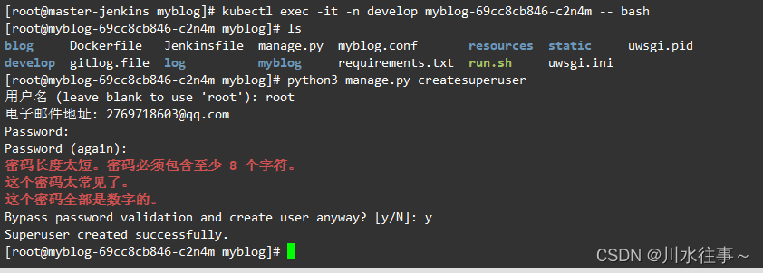python3 manage.py createsuperuser #生成一个管理员密码 也是myblog的登录密码