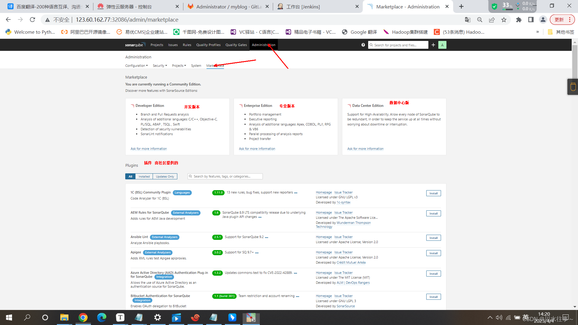 下载安装完sonar插件之后我们需要创建一个属于自己的对接的工具,这个工具需要有一个自己的token凭证