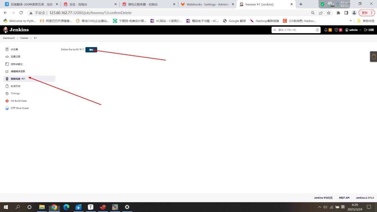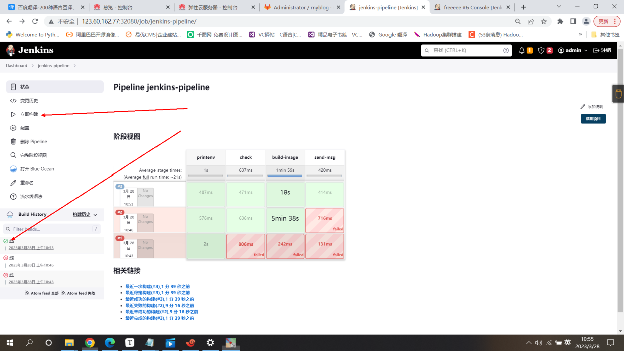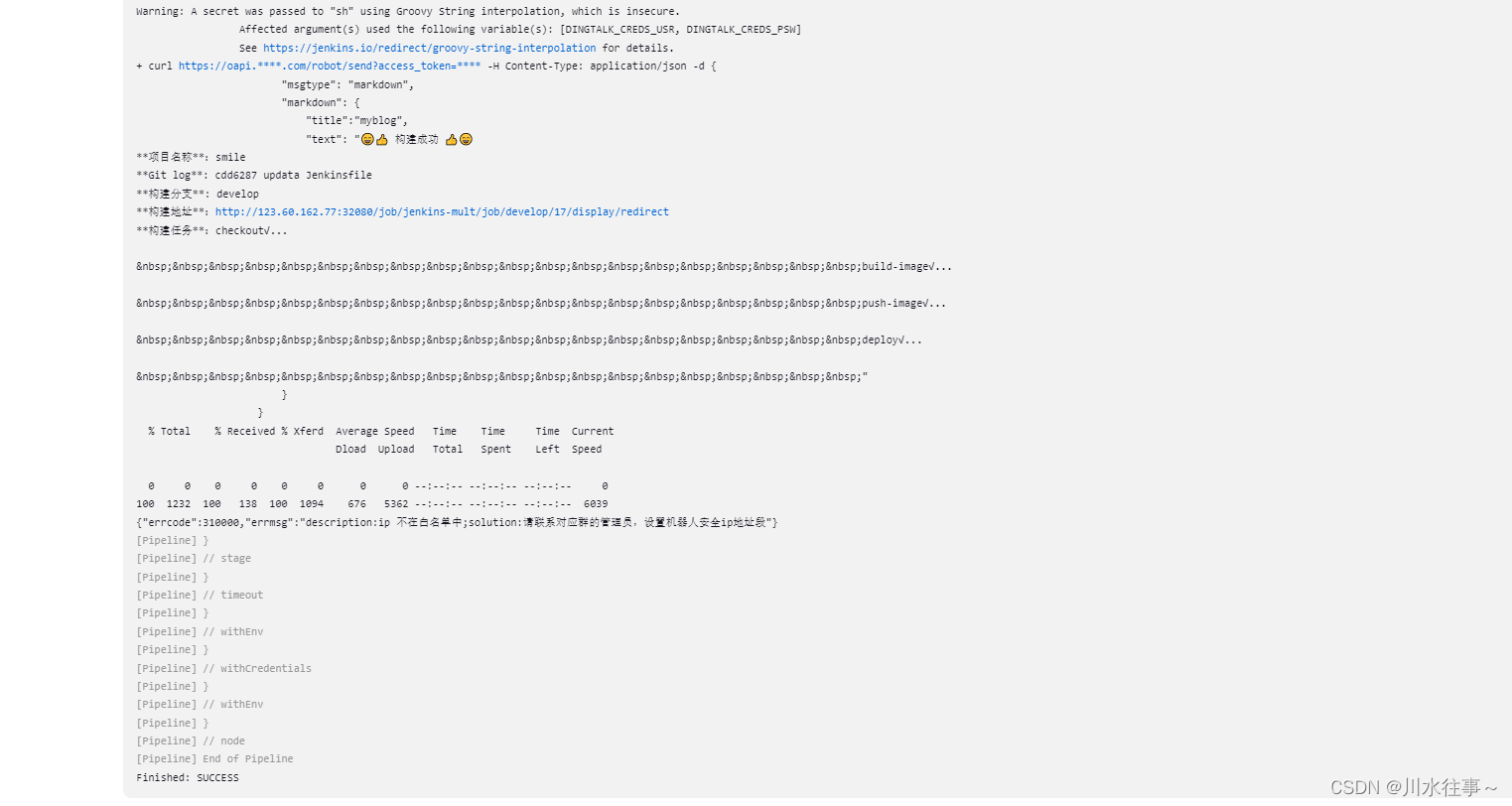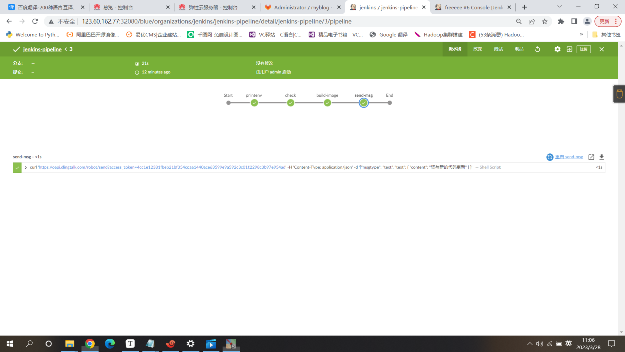 至此这边只是实现了简单的构建任务,要实现向钉钉推送还需要重新配置一个
