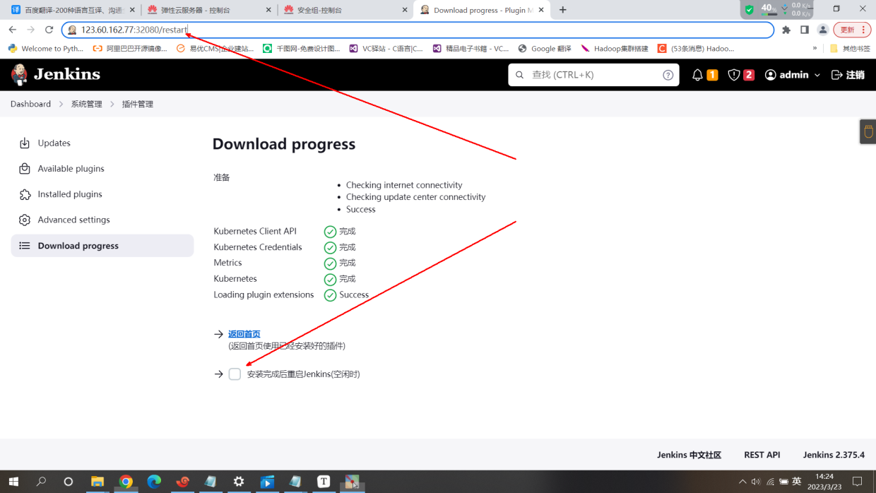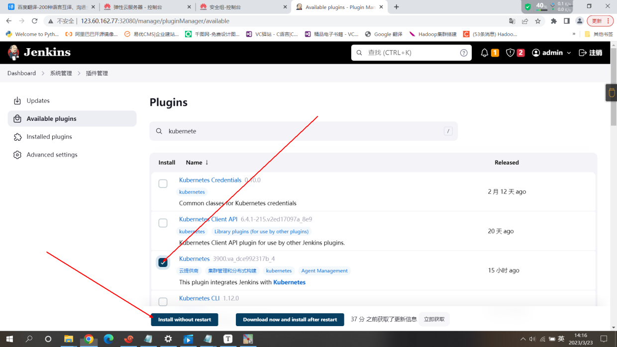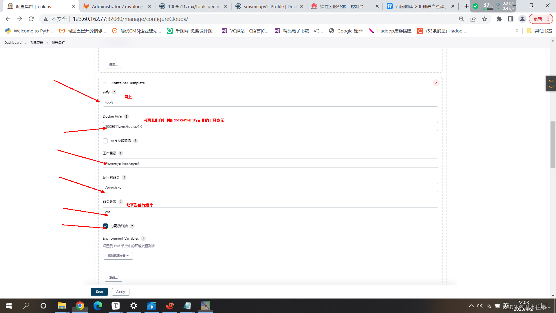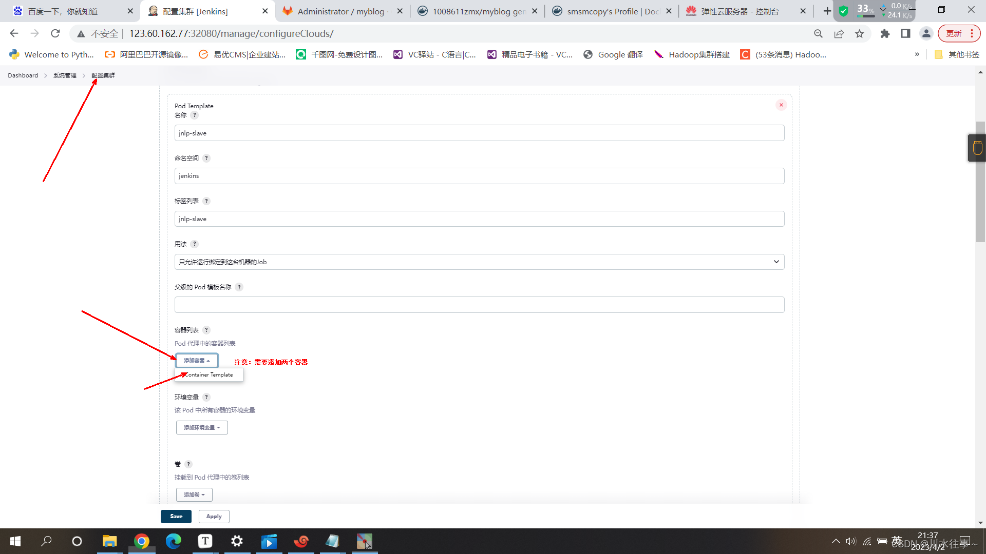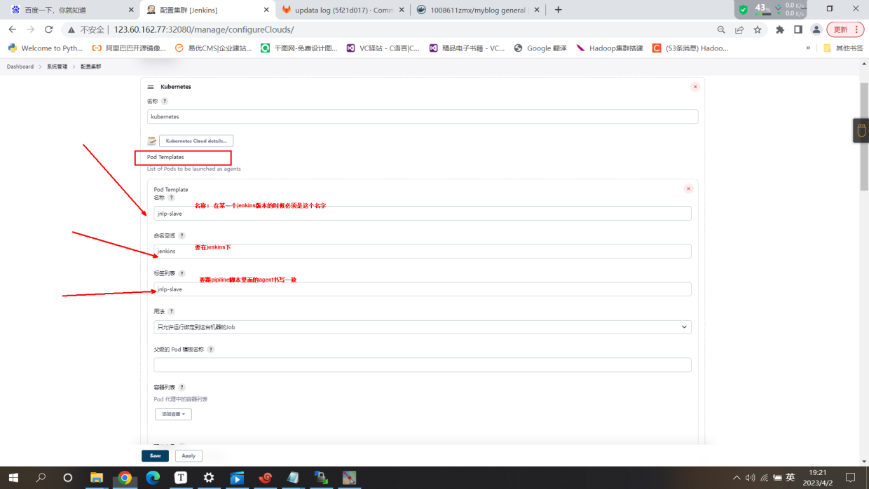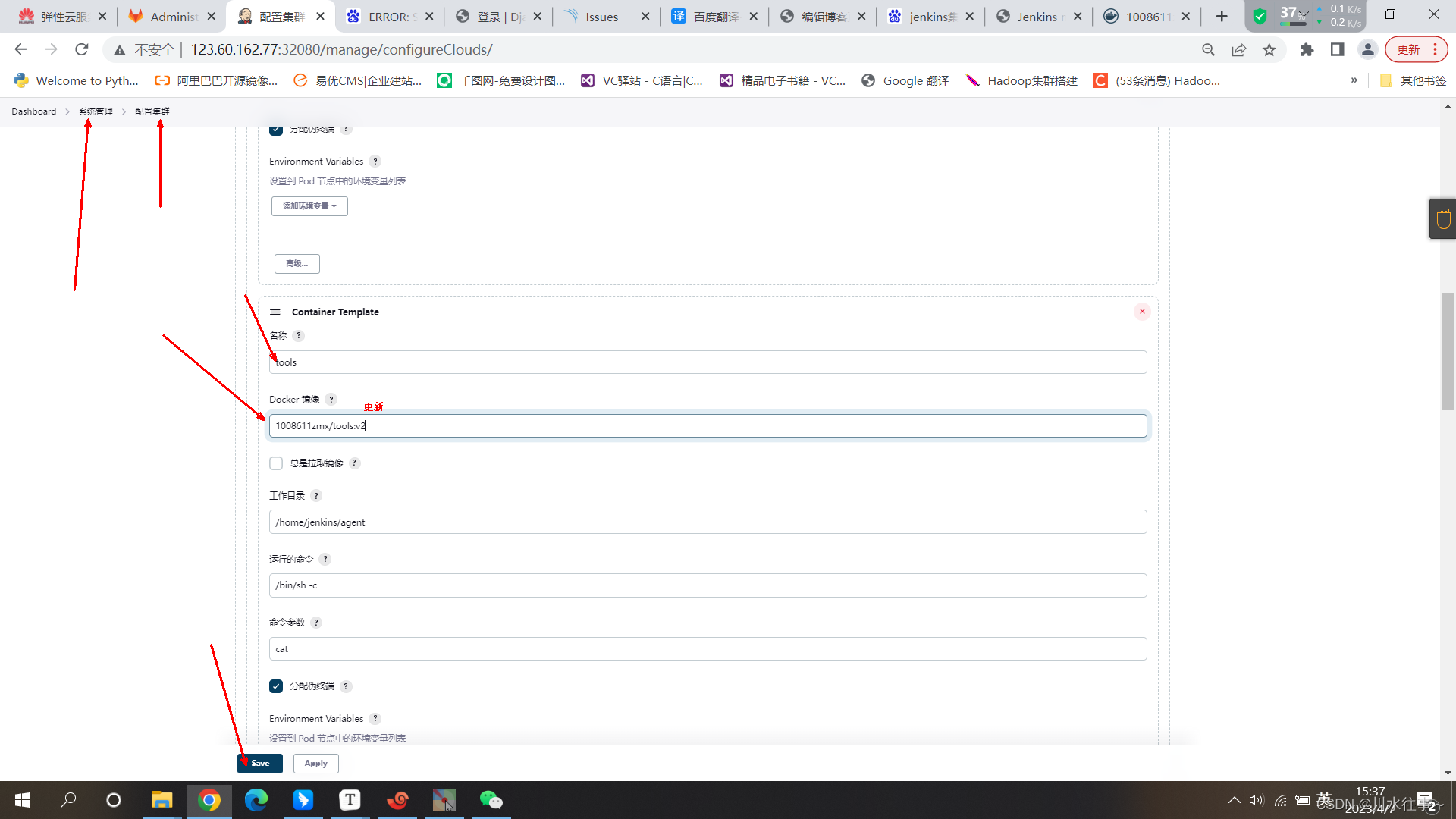 让后 更新Jenkins wed界面中kubernetes中的containers template tools版本