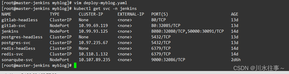 让后将实例apply上:#将测试yaml文件先执行上 让后通过流水线进行更新 更新的时候只需要更新myblog!!!