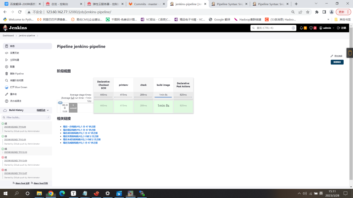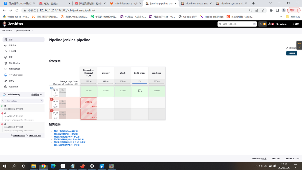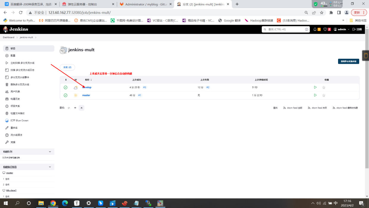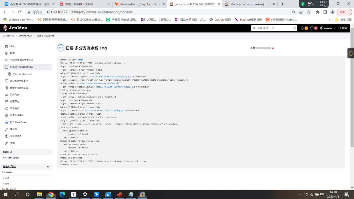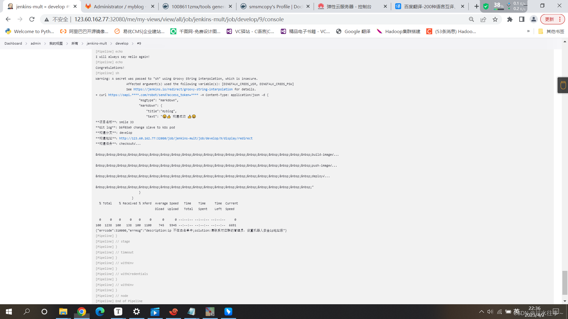 curl -sO http://123.60.162.77:32080/jnlpJars/agent.jar #因为我部署在云服务器 所以123.60.162.77:32080尽量用内网,如果是本地部署的需要在host里面写ingres地址做映射java -jar agent.jar -jnlpUrl http://123.60.162.77:32080/manage/computer/k8s%2Dslave1/jenkins-agent.jnlp -secret @secret-file -workDir "/opt/jenkins_jobs"