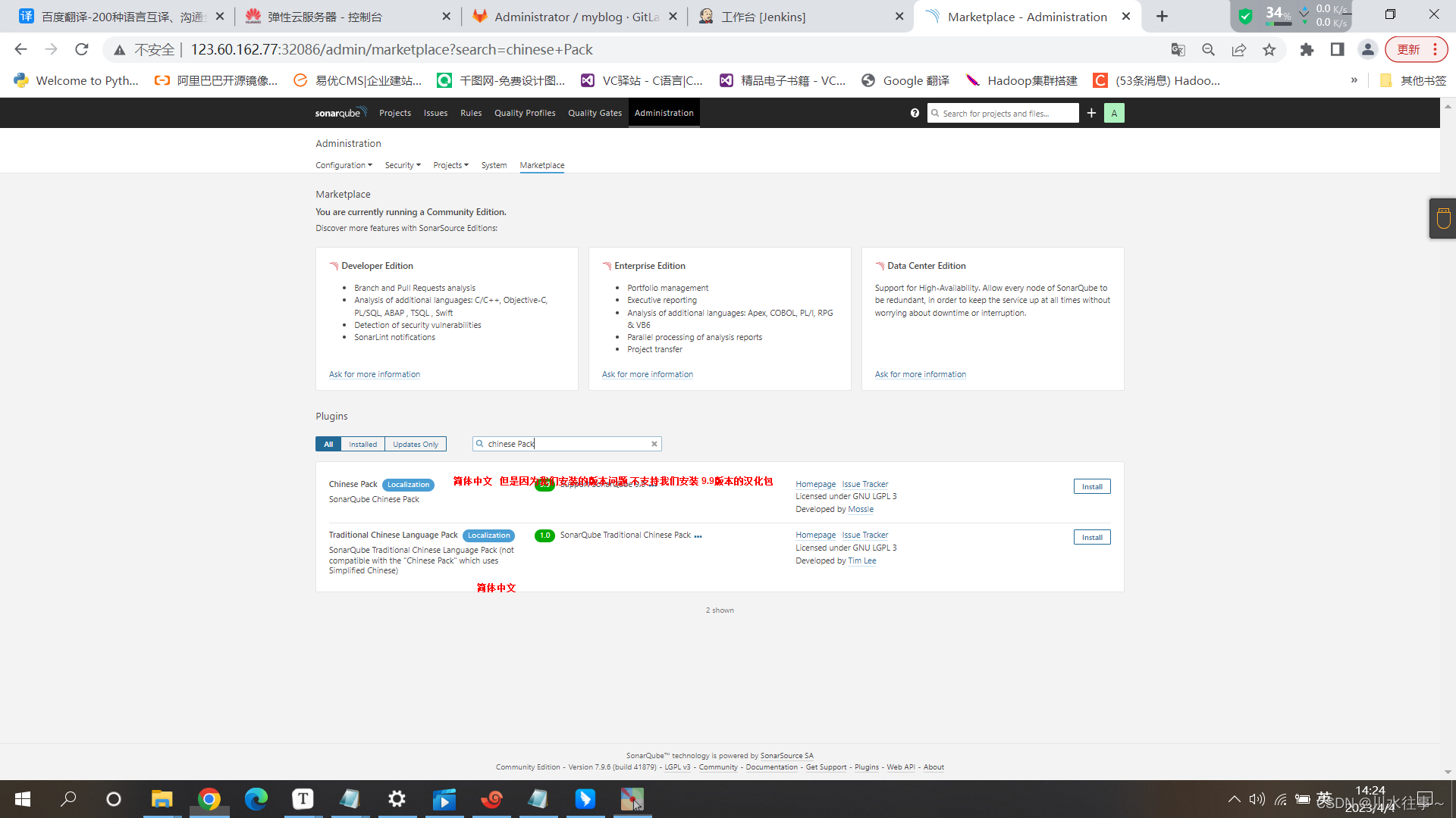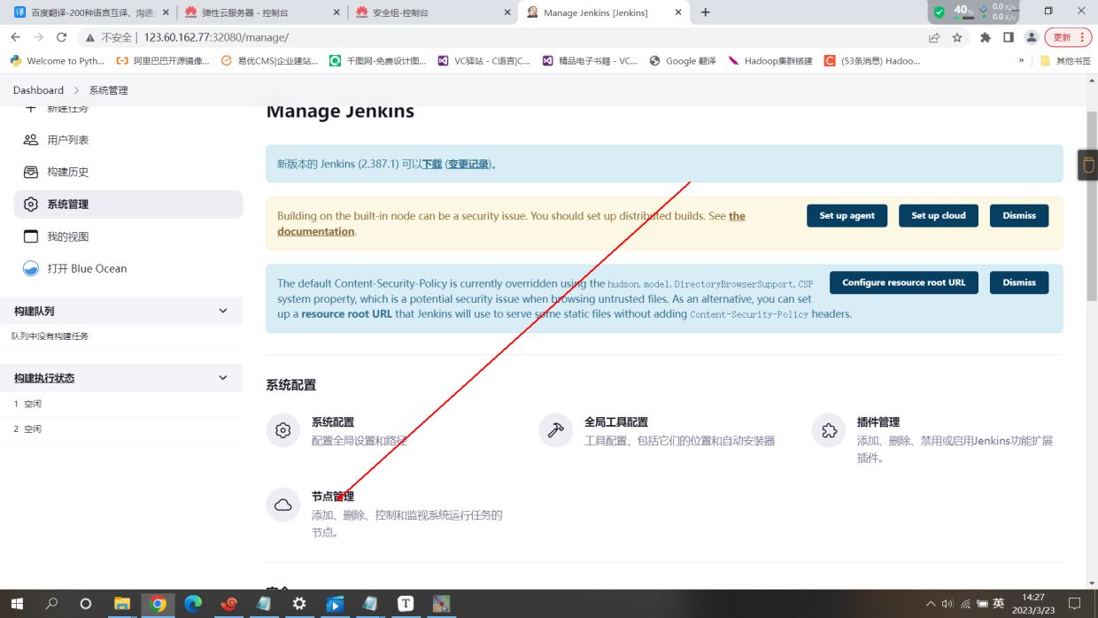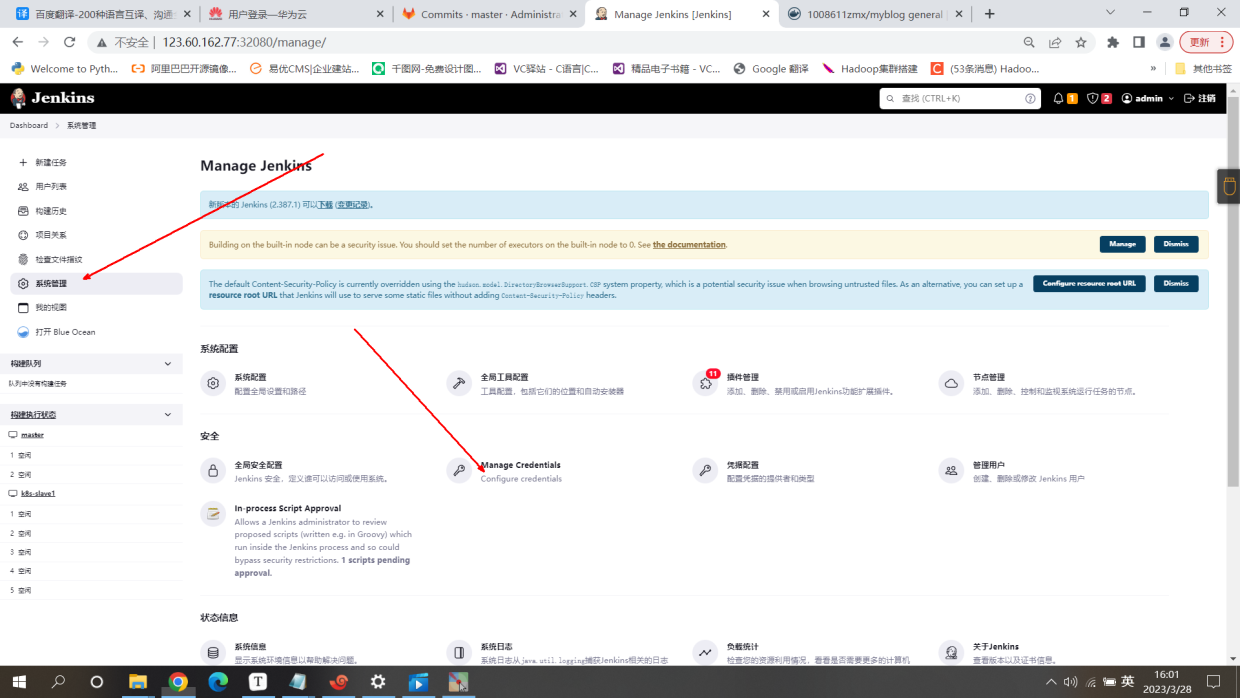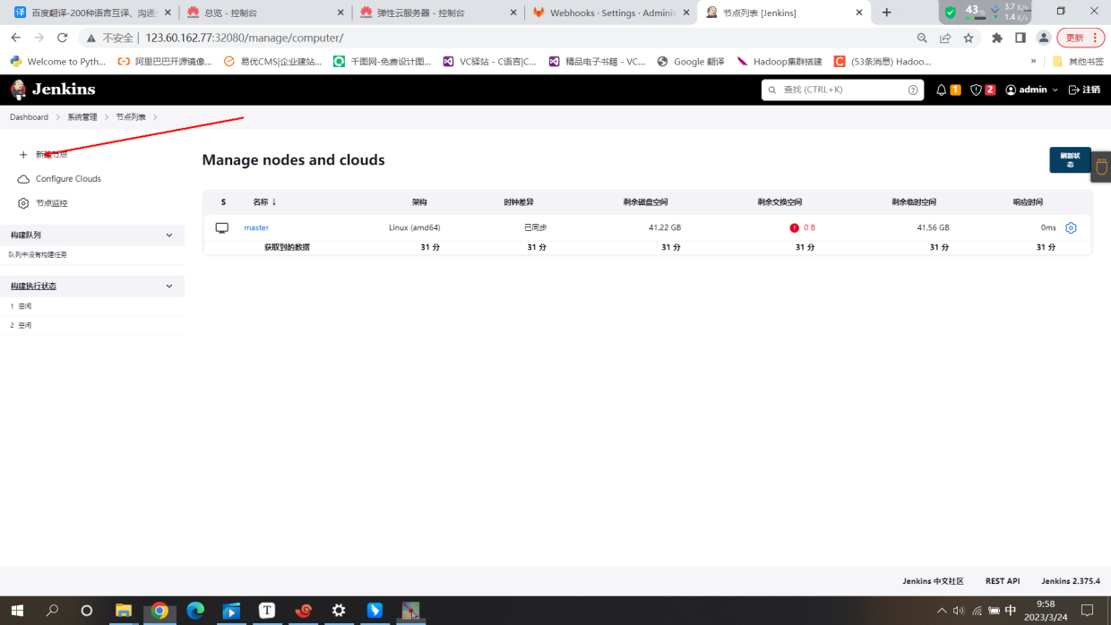 因为jenkins目前只有一个master节点 ,所以的工作都来自于master节点,master处于单点状态!!很危险