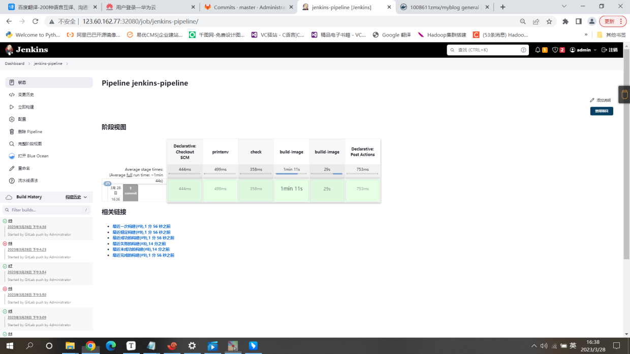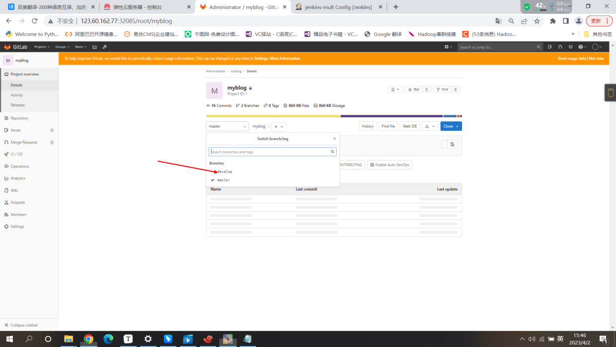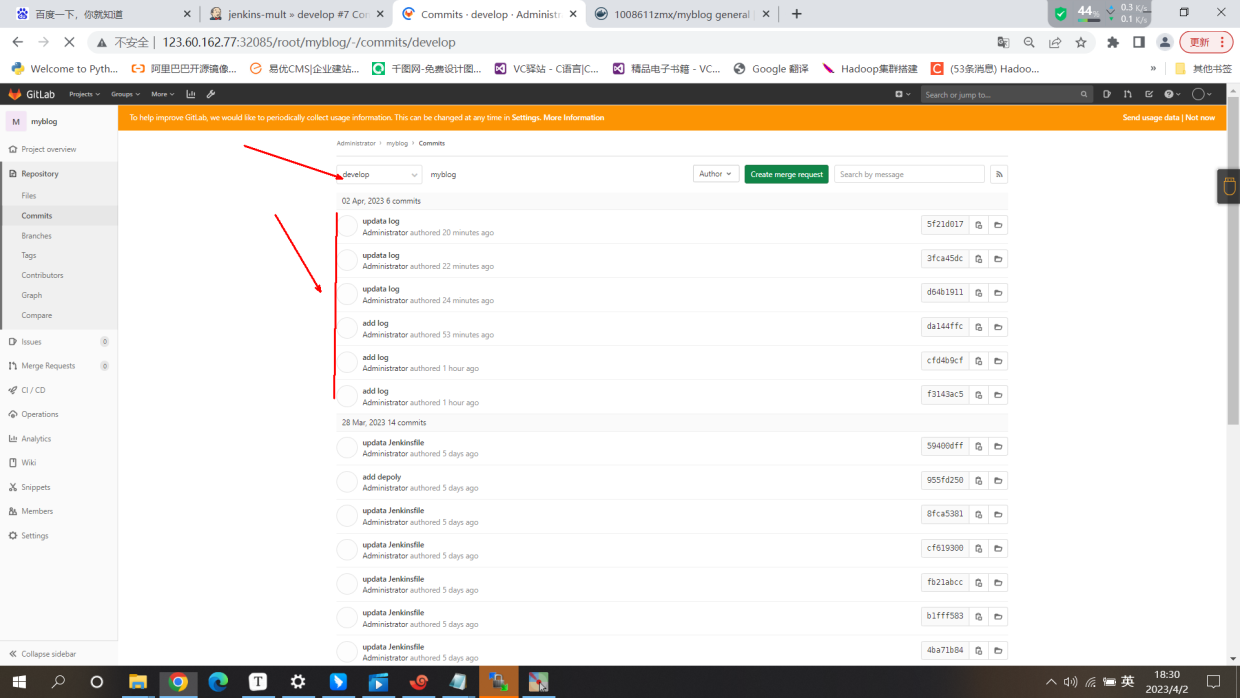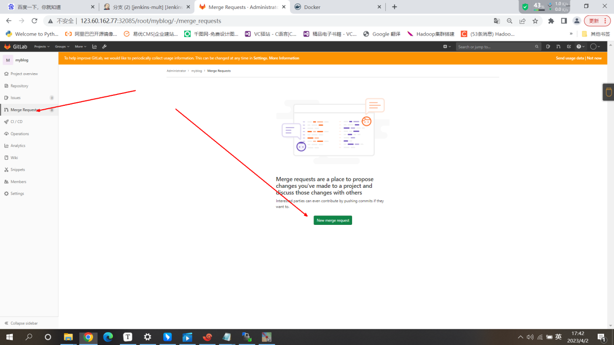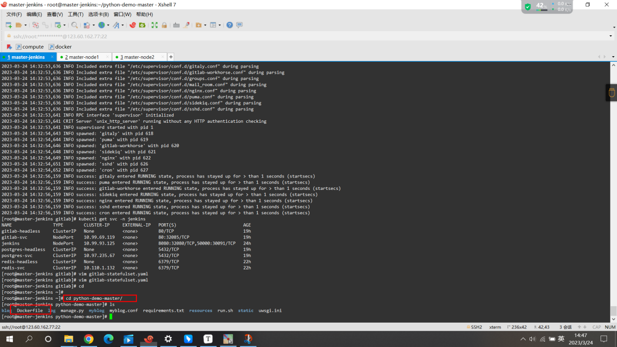 git init 代码初始化git remote add origin http://gitlab-svc/root/myblog.git 生成一个git地址 (在执行这个命令时如果出现fatal: unable to access 'http://gitlab-svc/root/myblog.git/': Could not resolve host: gitlab-svc; Unknown error需要将此命令的http://gitlab-svc/root/myblog.git修改为内部ip来使用)git remote -v 查看git地址git add .git commit -m "Initial commit" 初始化 git commit -m "updata Dockerfile(指定上传的包)"git push -u origin master #出现以下error 在host里面写指定