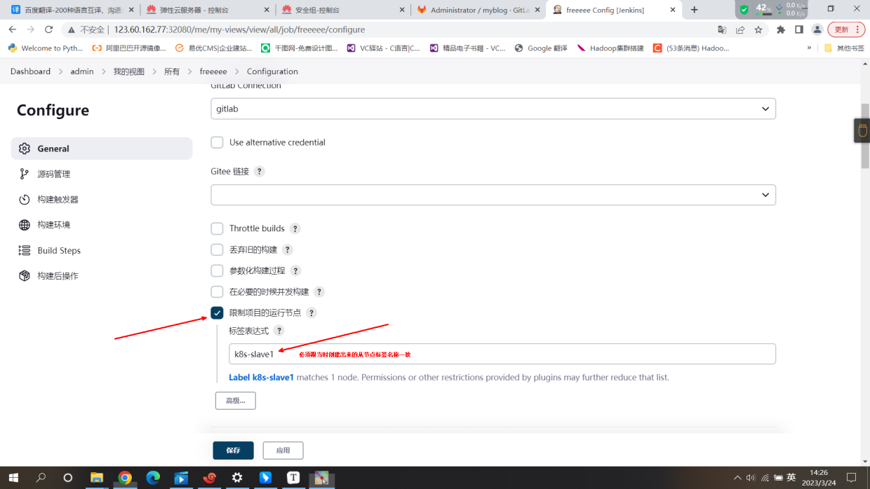 创建一个名为k8s-slave1的节点 并勾选固定节点