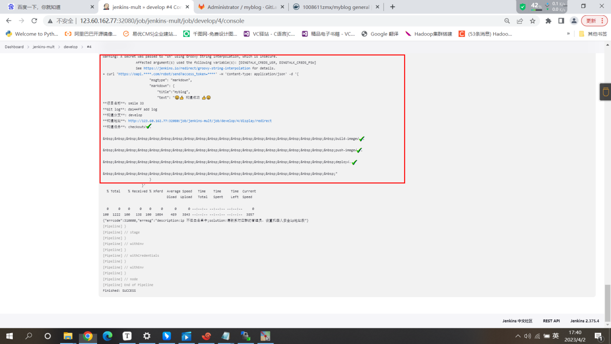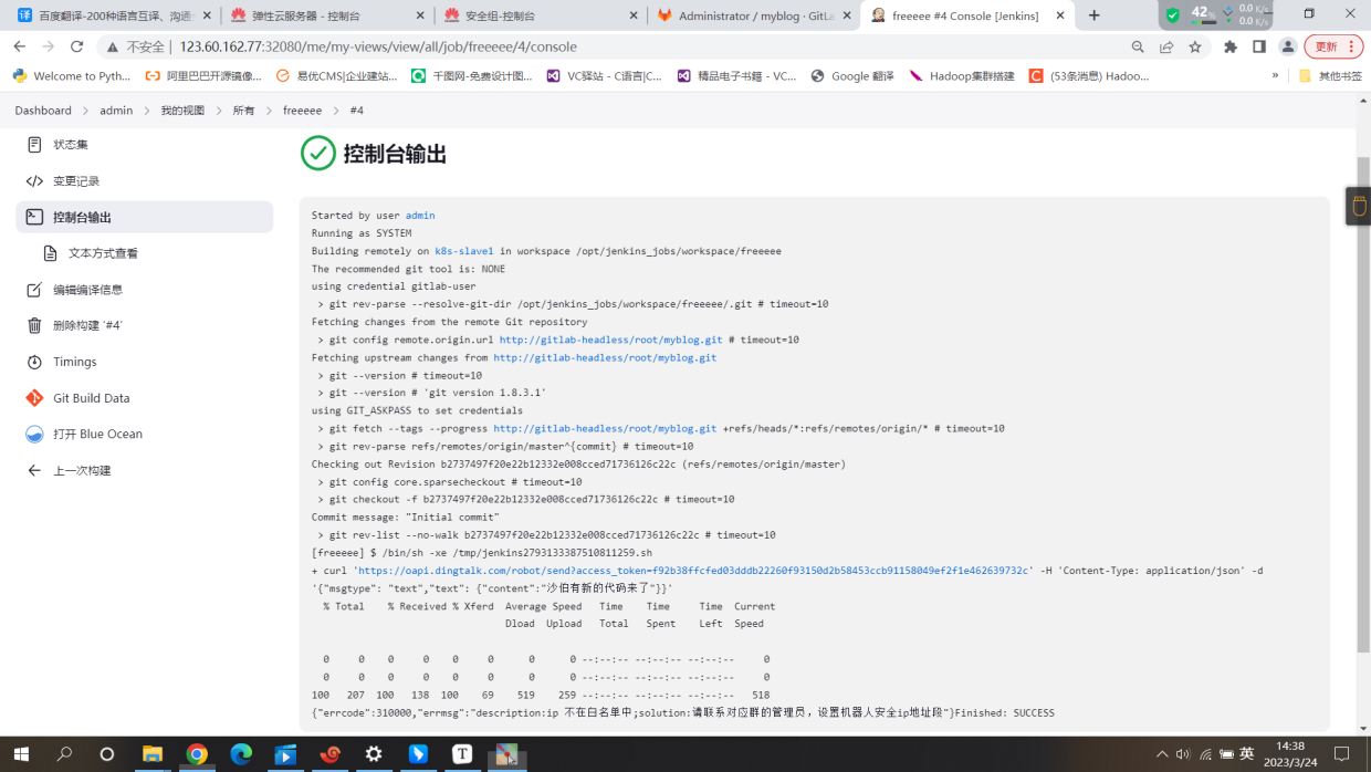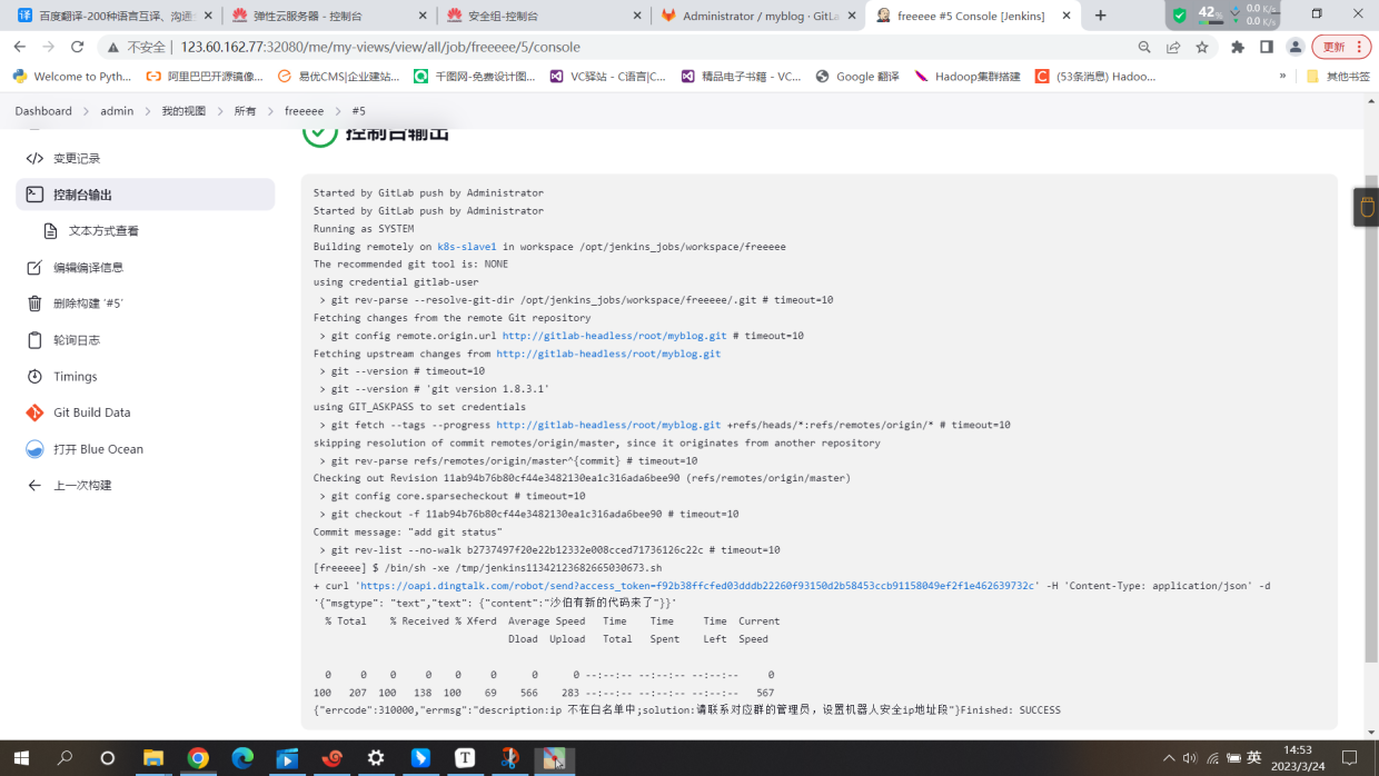 在jenkins配置当gitlab代码仓库发生更新后直接下载到本地并推送消息给钉钉